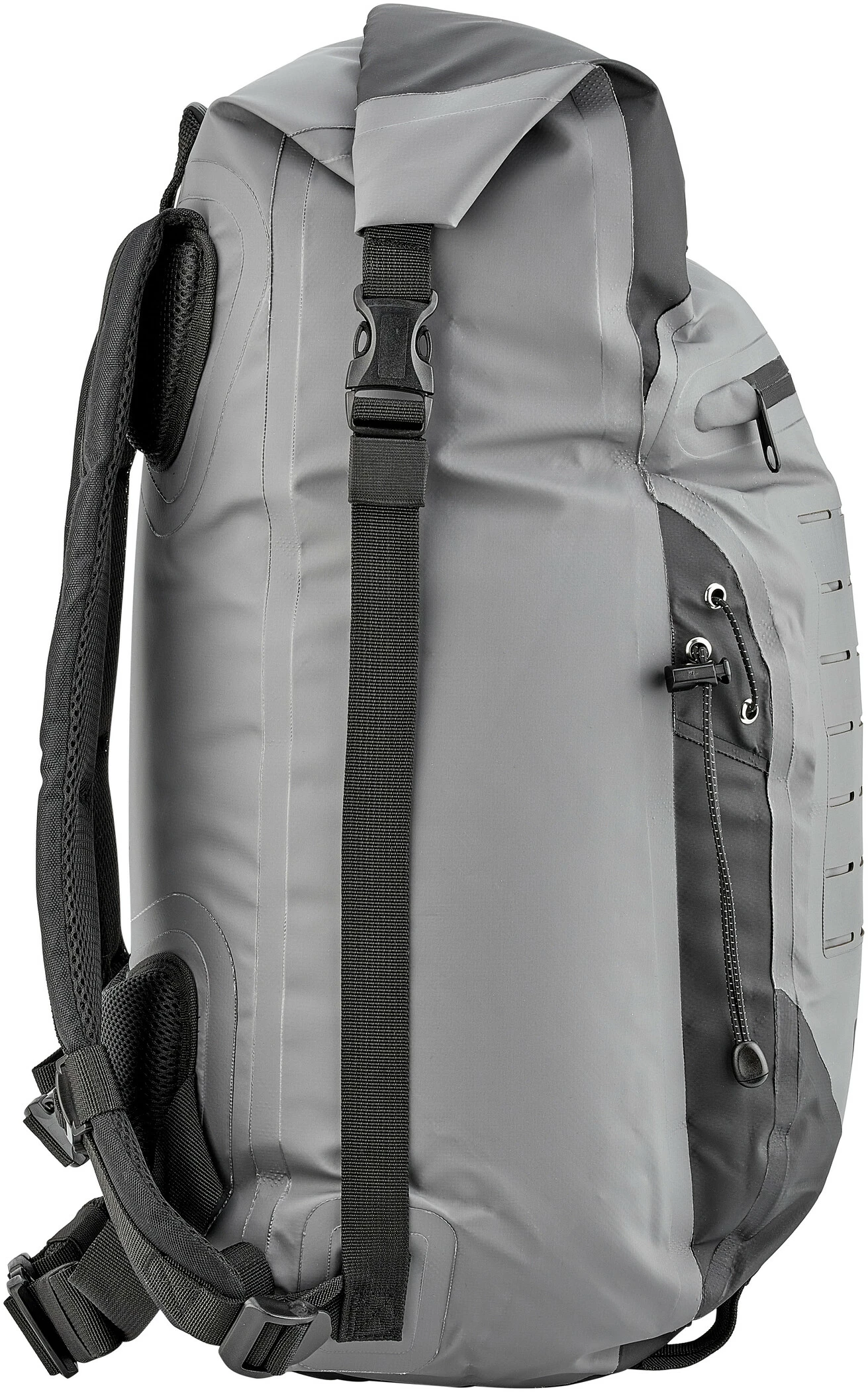 Met deze chique en praktische rugzak heb je alles bij de hand wat je nodig hebt voor je volgende dagtocht in de natuur, of gewoon op weg naar kantoor. Dankzij de grote opening en de robuuste en waterdichte rolsluiting, kun je de rugzak makkelijk beladen en de capaciteit enigszins variëren. Dankzij de voering op de rug en de verstelbare heup- en schouderriemen, wordt het gewicht zelfs bij volledige belading goed over je rug verdeeld. Platte en verlijmde naden en het onopvallende design zorgen voor een elegante look. De grote lussen aan de onderkant bieden de mogelijkheid om de heupgordel op te bergen als je hem niet nodig hebt, of om reserveschoenen aan de rugzak te hangen.