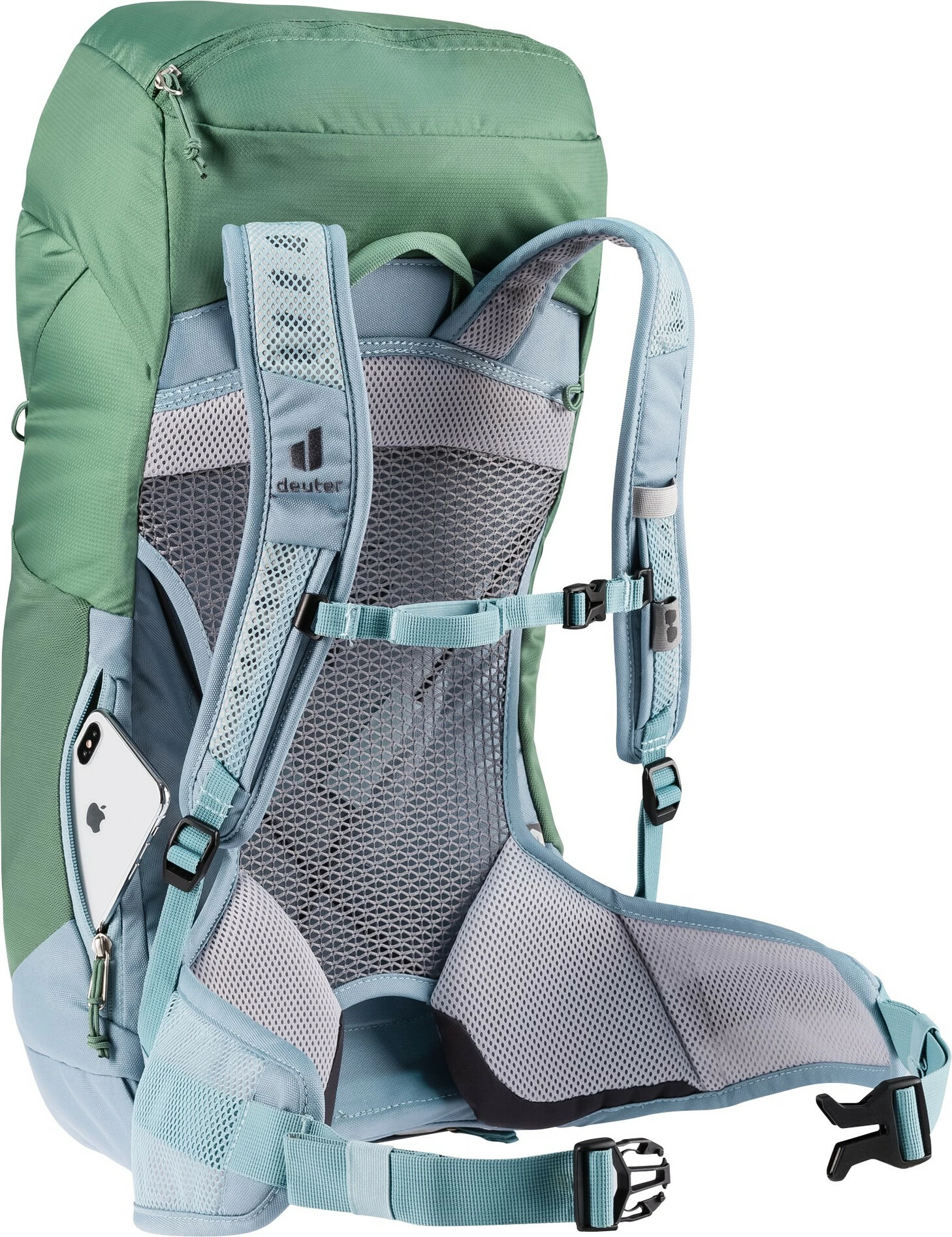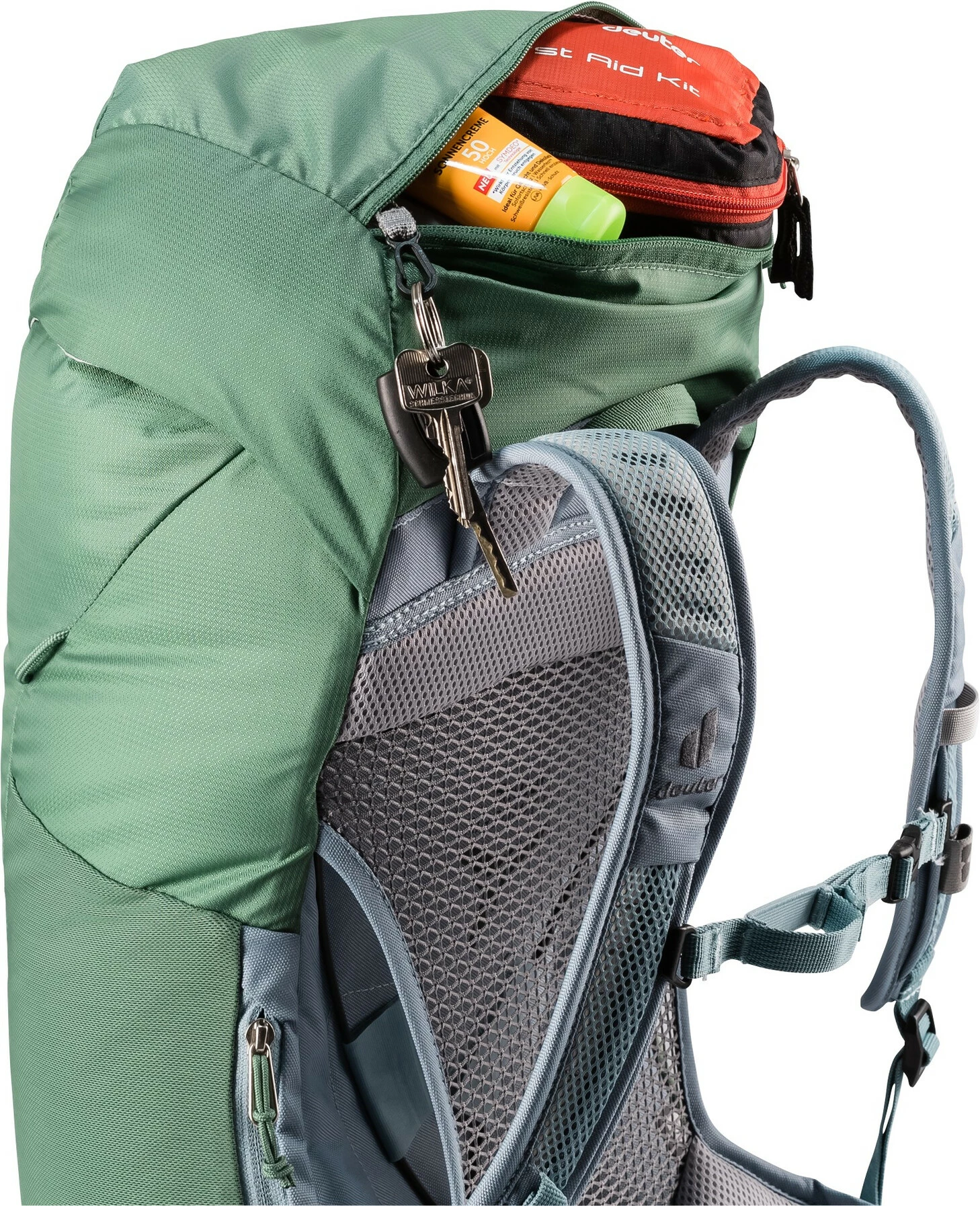 Met behulp van het gespannen Aircomfort speciaal gaas wordt een ventilatieruimte gecreëerd tussen de rugzak en de rug, waardoor de vochtige lucht ongehinderd kan ontsnappen. De gepatenteerde Deuter 3-zijdige ventilatie vermindert vochtverlies tot 25% (getest en bewezen door het gerenommeerde Hohenstein Instituut).