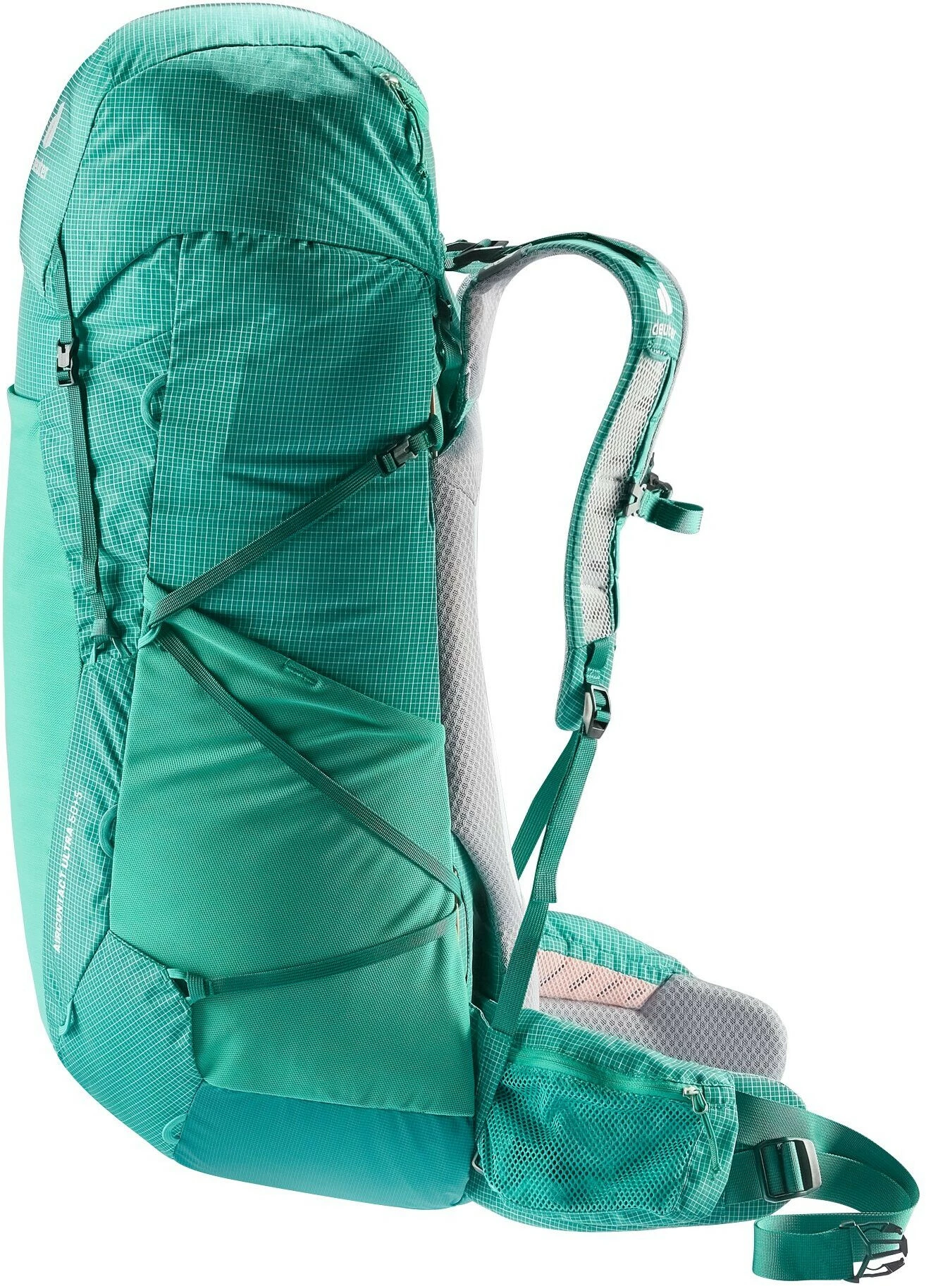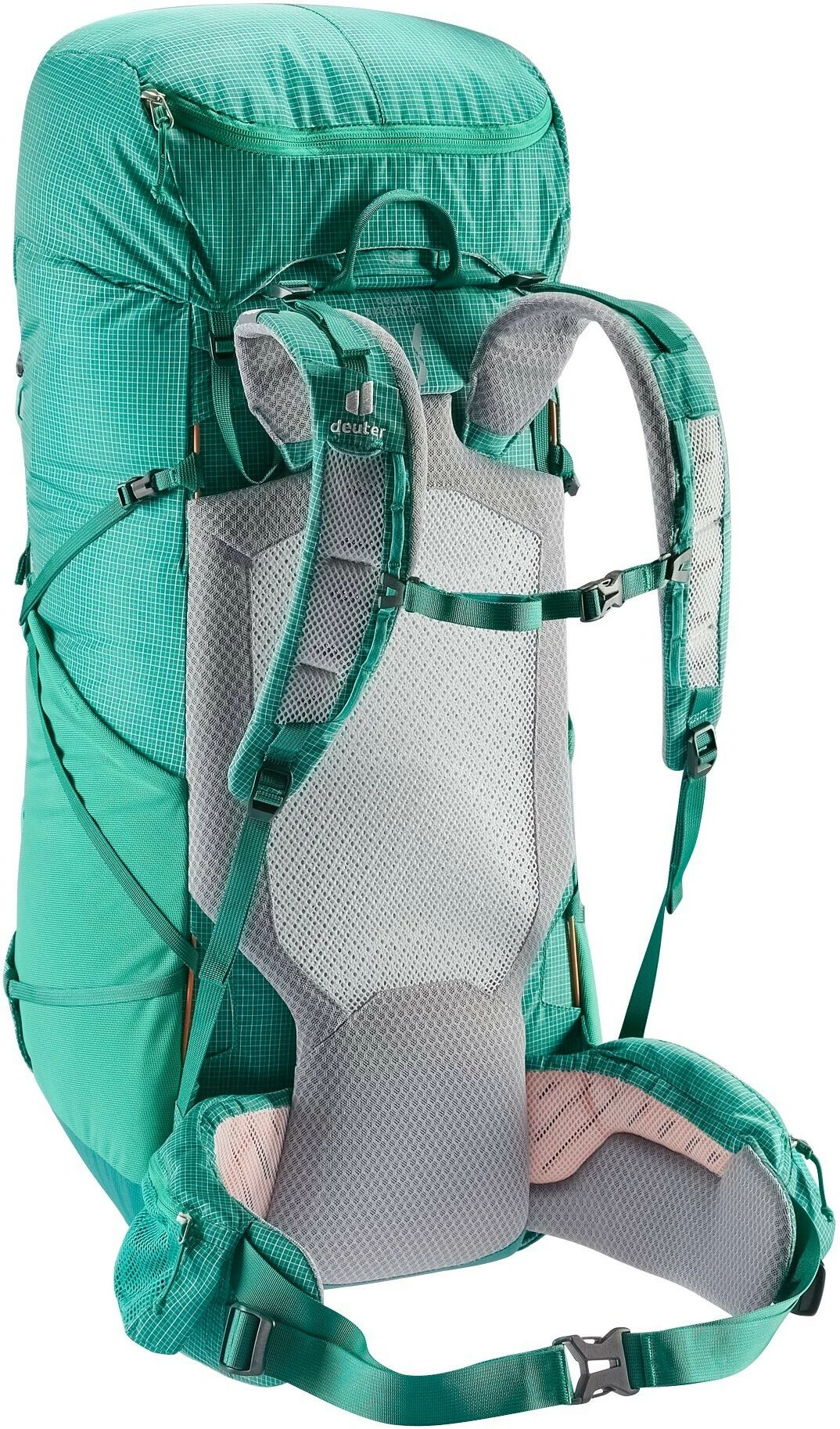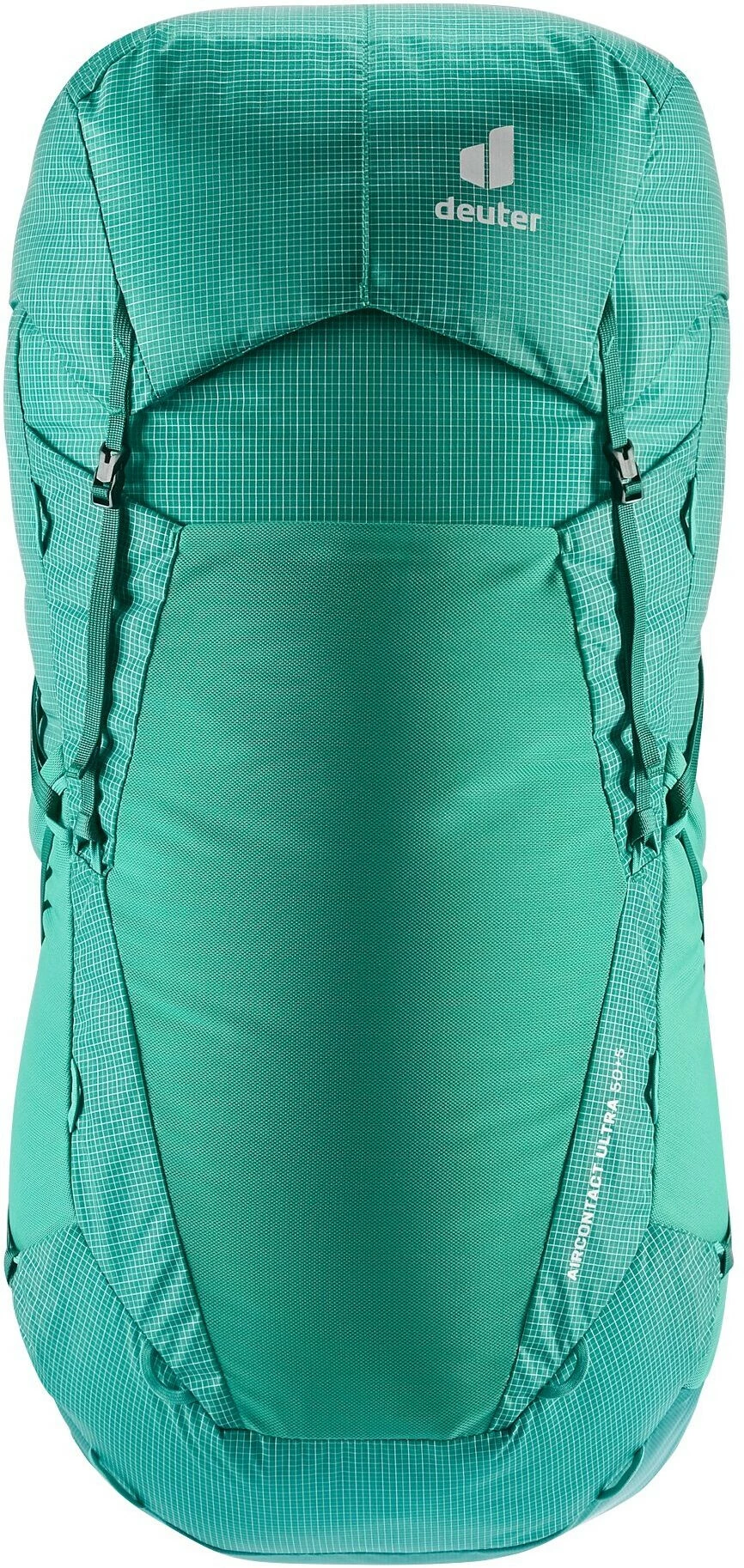 - Afneembare, naar wens te configureren compressieriemen voor het bevestigen van slaapmatten, tenten of ladingen in de bodem van de rugzak