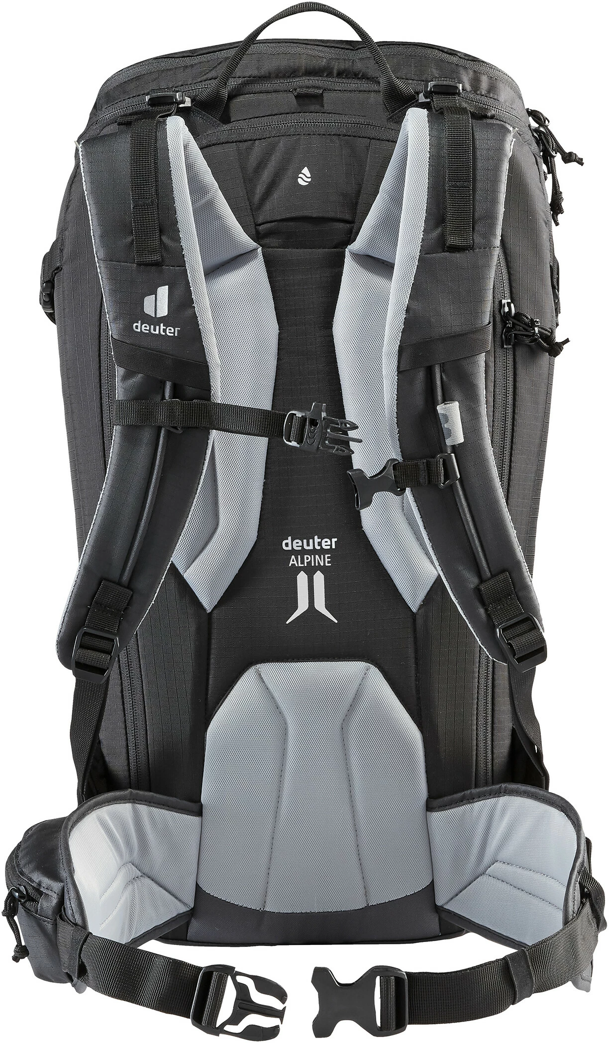 De nieuwe Freerider-rugzak maakt in de eerste plaats indruk met zijn moderne en heldere design. De bevestigingslussen en riemen kunnen worden opgeborgen in garages aan de voorkant van de rugzak. Het verder ontwikkelde Deuter Alpine comfort draagsysteem garandeert een comfortabele dagtocht, zelfs met een zware lading. De ski- en snowboardrugzak biedt een groot aantal opbergmogelijkheden om materiaal zoals brillen, schoppen enz. veilig op te bergen.