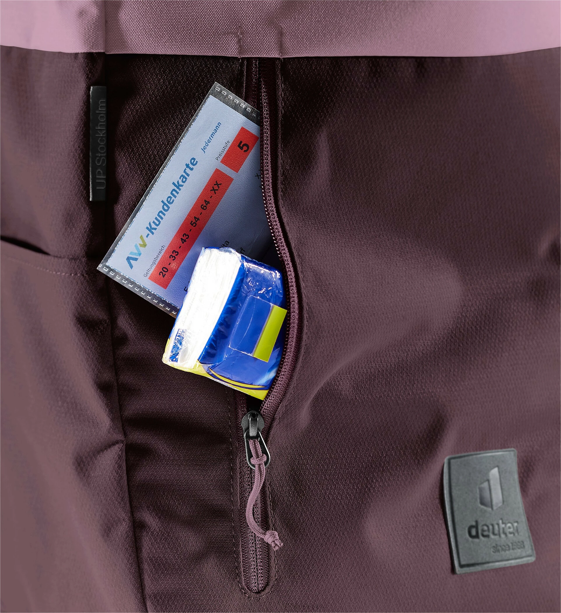 Milieubewust met de UP Stockholm op pad in de stad. Omdat hij de functies van een stadsrugzak vervult en met zijn grondstofbesparende productie een grote bijdrage levert aan het milieu. Enerzijds bestaat de UP Stockholm uit gerecycleerde materialen – ongeveer 35 PET-flessen (0,5 liter). Alle stoffen zijn vervaardigd volgens de bluesign-norm. Anderzijds wordt het verbruik van water en ruwe olie in het fabricageproces aanzienlijk verminderd.