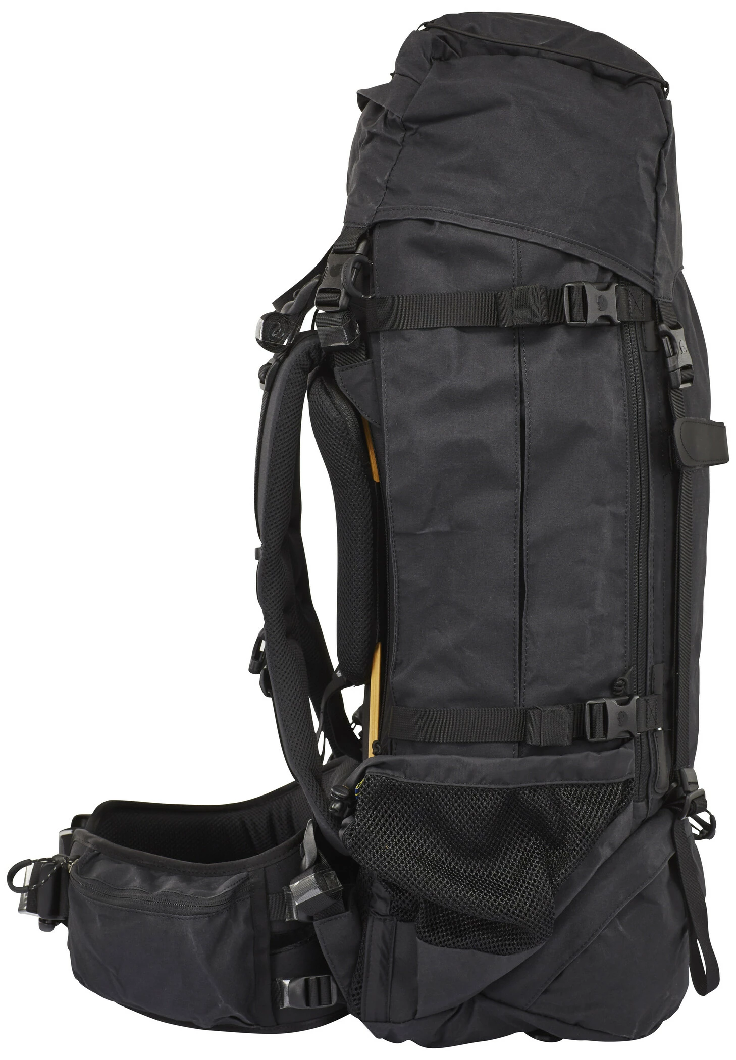 Slijtvast, comfortabel en boordevol functies – ondanks de pretentieloze buitenkant is de Kajka een geavanceerde trekkersrugzak in klassieke Fjällräven-stijl. Nu vernieuwd met verbeterde functies en een innovatief, uniek houten frame dat aanzienlijk minder impact heeft op het milieu, maar tegelijkertijd even robuust en functioneel is. Het draagsysteem is ontworpen om zelfs de meest zware bepakkingen te ontlasten en het gebruiksvriendelijke Perfect Fit-verstelsysteem kan eenvoudig aan ieder lichaam worden aangepast – zowel aan de ruglengte als de breedte tussen de schouderbanden. De brede heupgordel biedt een hoog draagcomfort tijdens lange wandeldagen.Het hoofdvak heeft een bovenopening met een sneeuwafdichting, een grote verticale opening aan de voorzijde en een opening aan de onderzijde voor een goed overzicht van je spullen. De rugzak kan worden verdeeld in een boven- en onderdeel waarbij het onderste gedeelte is voorzien van een Wet/Dry-compartiment dat natte en vuile spullen gescheiden houdt van de rest van de uitrusting. Ook de bovenklep, de zijkanten en de heupgordel zijn voorzien van praktische zakken met rits. De bovenklep is afneembaar en kan gedragen worden als heup- of borsttas om waardevolle spullen extra in de gaten te kunnen houden. Twee compressiebanden aan beide zijden, bevestigd aan smalle staven, zorgen voor gelijkmatige en doeltreffende compressie van de rugzak, waarbij de openingen van de zijvakken toegankelijk blijven. Bevestigingsmogelijkheden op de bovenklep en de onderzijde van de rugzak. Fluitje op de borstband en regenhoes met reflectie.De Kajka is wereldwijd populair onder wandelaars en wordt ook bejubeld in de vakbladen. Het Zweedse outdoortijdschrift Utemagasinet heeft de Kajka in 2009 uitgeroepen tot Product van het jaar en in 2011 werd de rugzak als Beste getest in de grote Finse Retkis-rugzaktest.