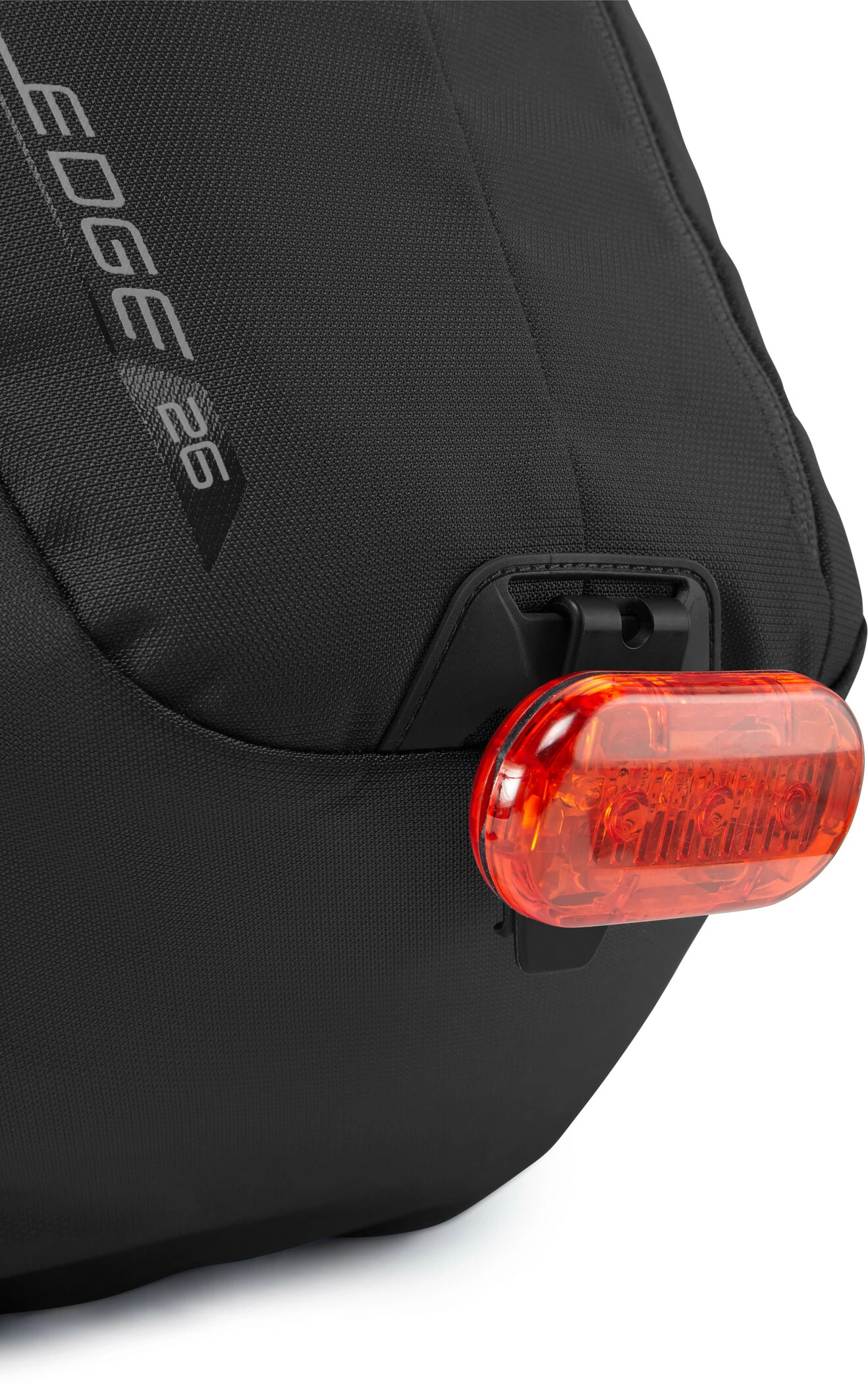De Edge 26 overtuigt met een voorgevormde achterplaat, een nog soepelere pasvorm en een geoptimaliseerde bewegingsondersteuning. De grote opening naar het hoofdcompartiment biedt gemakkelijke toegang tot uw uitrusting en voldoende ruimte voor alles wat u onderweg nodig hebt. De vakken aan de voorkant en de bovenkant met rits helpen om dingen te organiseren, terwijl een intern veiligheidszakje met sleutelhanger uw waardevolle spullen vasthoudt. Zelfs als het donker is, zorgt de reflecterende fietslampbevestiging voor zichtbaarheid.