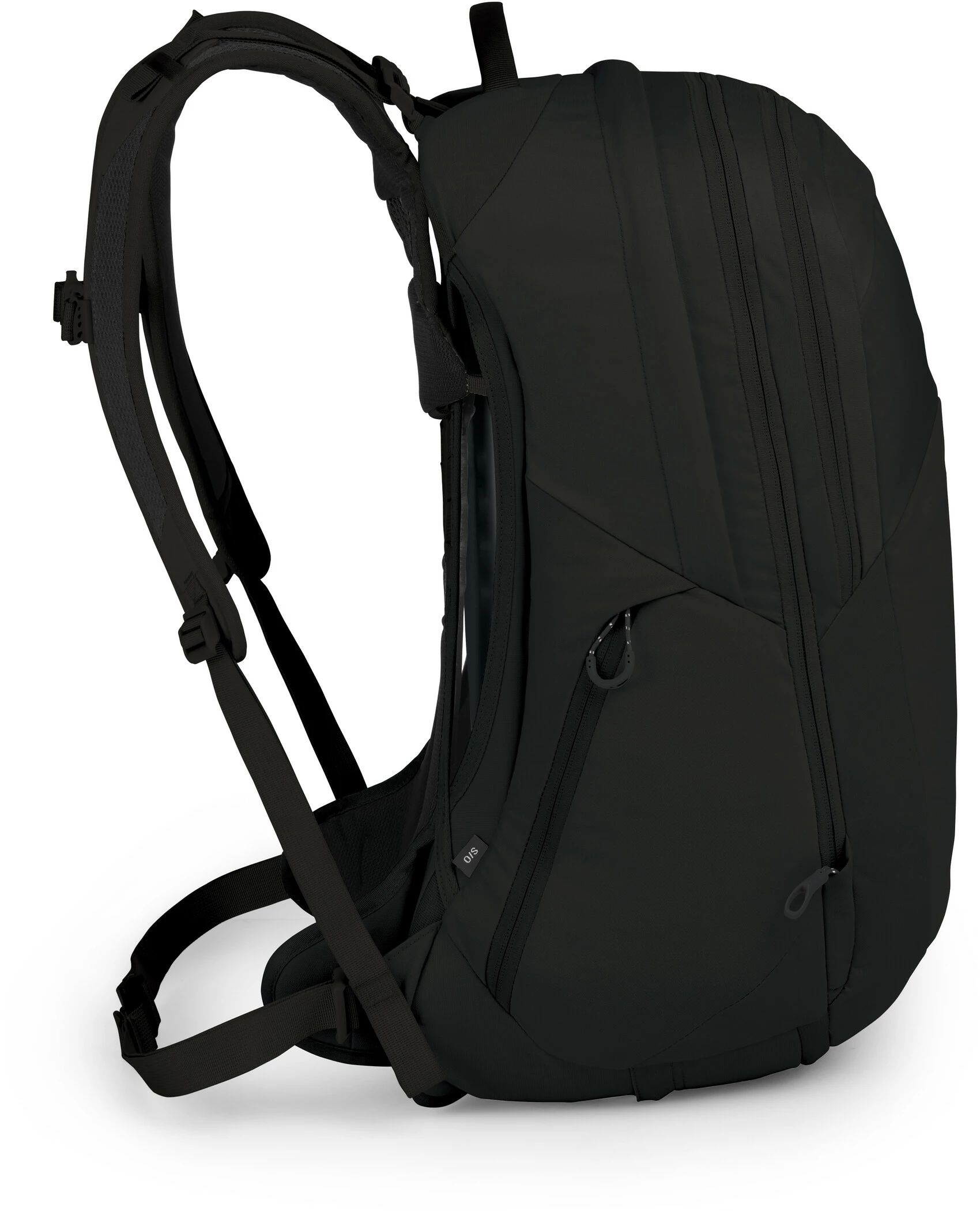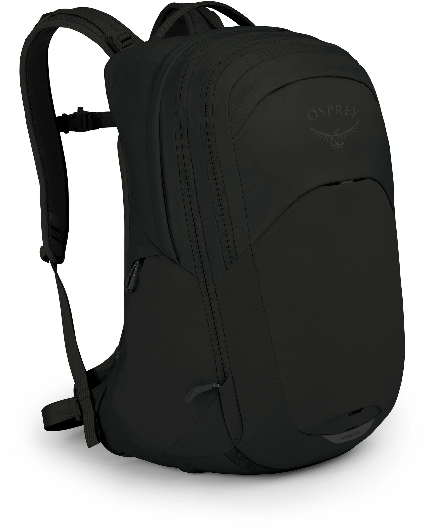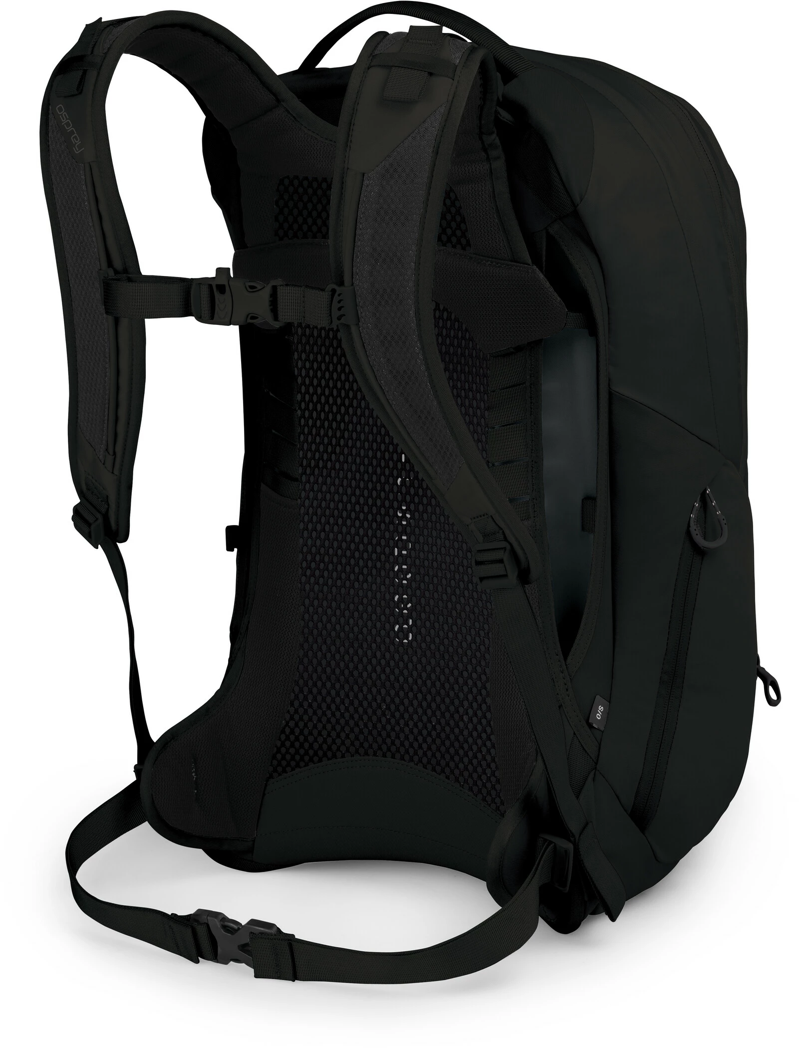 De LidLock fietshelmbevestiging bergt de helm buiten op in de rugzak. Het gevoerde laptop- en tabletvak beveiligt uw technische apparatuur, terwijl de geïntegreerde reflecterende regenhoes wordt gebruikt wanneer het weer plotseling verandert.