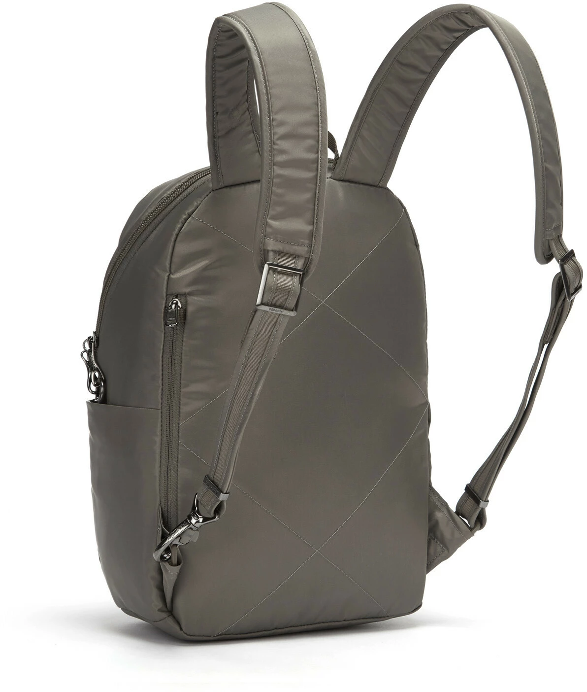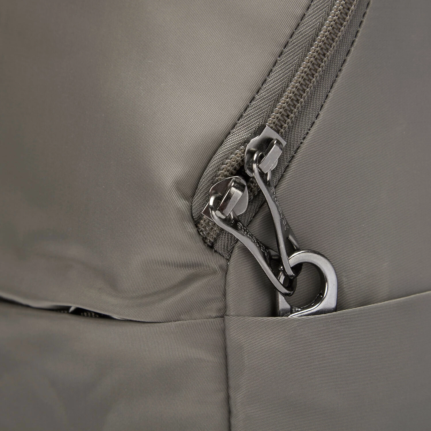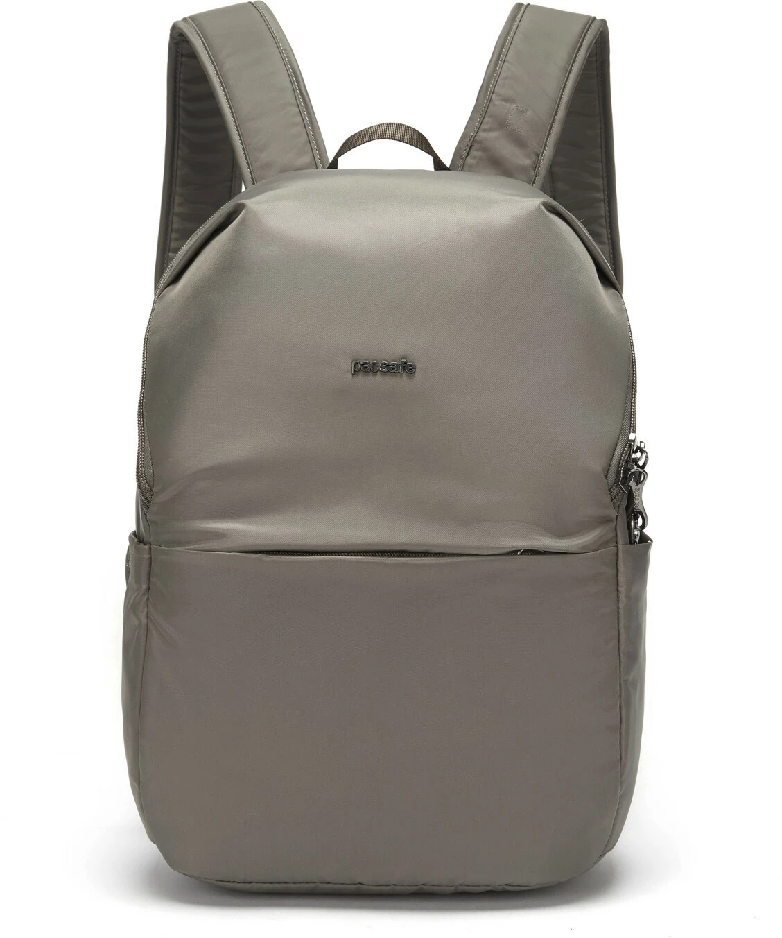 Slim, stijlvol en robuust, deze gerecyclede anti-diefstal rugzak is voor attente vrouwen die graag reizen. Er is ruimte voor een laptop, zonnebril, waterfles, pasjes en meer, en een slim achtervak verbergt een telefoon of portemonnee.