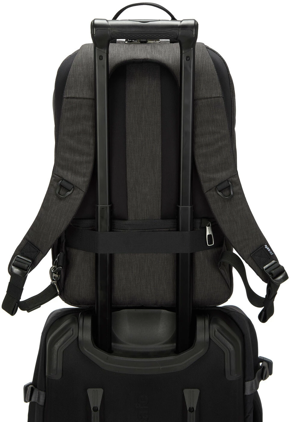 In de verstelbare Carrysafe-banden is een flexibele en lichte, van buitenaf onzichtbare, roestvrijstalen draad verwerkt. Dit voorkomt dat de riemen gemakkelijk worden doorgesneden om de tas te stelen.